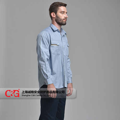 全棉或T/C面料舒適耐磨 胸口雙口袋撞色設(shè)計實用且不失時尚 背部修身設(shè)計,袖口收緊方便安全 款式休閑白搭,整體展現(xiàn)職場時尚與穿著舒適及安全性融為一起。